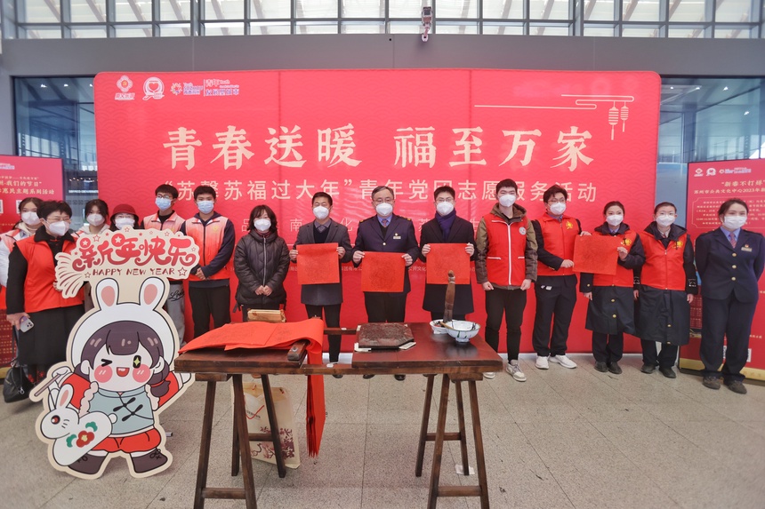 1月7日,由江苏省苏州市文化广电和旅游局、中国铁路上海局集团有限公司苏州站、共青团苏州市委员会主办,苏州市公共文化中心承办,苏州建设交通高等职业技术学校协办的“青春送暖 福至万家——‘苏馨苏福过大年’青年党团志愿服务活动”在苏州火车站启动。