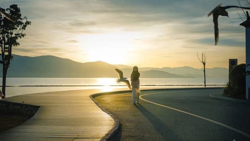 1.洱海生态廊道:洱海生态廊道位于洱海西侧,全长46公里,是大理旅游的“一张新名片”,也是一处新晋网红打卡地。廊道由步行道、自行车道组成,宛如一条银带环绕在洱海边,将沿岸各具特色的白族传统村庄、湿地、景观等串成 “围绕洱海的一串珍珠”,形成了一道道靓丽的风景线。清澈的湖水、飞翔的鸟群、盛开的海菜花、绿意盎然的沿湖景观、典雅古朴的白族民居建筑、沿线村庄中白族群众的生活景象……自然、人文、民俗、美学,在洱海生态廊道交织成一曲动人的乐章。廊道相应景点可观苍山日落、可看洱海日出,非常壮观。