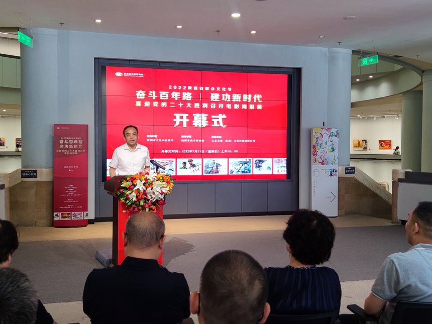 7月31日,为迎接中国共产党二十大胜利召开,由陕西省文化和旅游厅主办、陕西省美术博物馆承办的“奋斗百年路 建功新时代——喜迎党的二十大胜利召开电影海报展”在陕西省美术博物馆开幕。