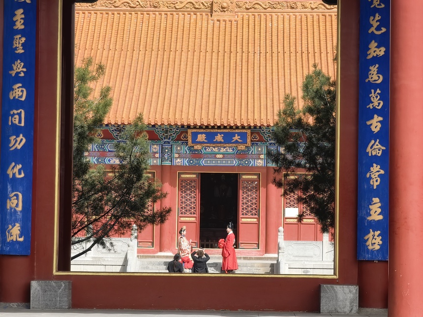4月9日,正值春光烂漫的时节,来自河北省石家庄市的游客李若昕选择“错峰出行”,带父母来到济南府学文庙。“看网上报道近期济南景区‘人挤人’,所以错峰游览,从大明湖散步过来非常近,也没刻意寻找。”李若昕说,让她印象深刻的是济南府学文庙非常“年轻化”,周边有许多簪花小店,打卡的年轻人都在排队;景观内部也有品尝下午茶等新业态。