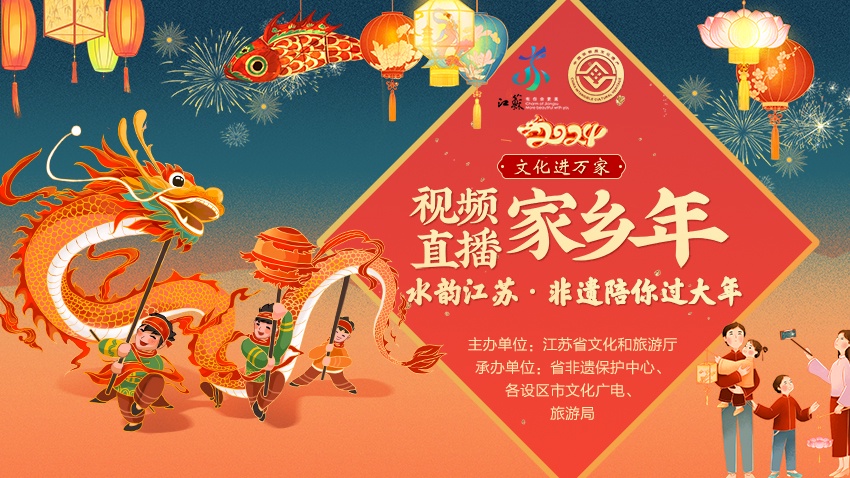 江苏各地非遗保护机构、非遗传承人和广大网友,将用镜头记录春节年俗,开展非遗传承实践活动,使用统一话题标签,通过网络平台进行展播或直播,打造生动有趣、文化味十足的网上“非遗过大年”。