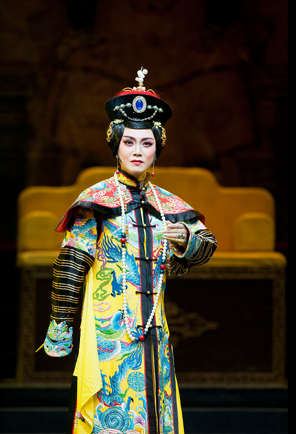 层层递进的情节冲突、剑拔弩张的命运交锋,尽显庄妃的魄力、胆识与担当,而刘京的表演也在一次次僵局的扭转中,借助眼神、表情、情绪乃至唱腔的调整变化,赋予了庄妃以不同的外在气势和内心状貌。此外,刘京在表演上还特别注重对隐含于性格和情感背后的文化和精神内蕴的发现、开掘,既从雄才大略、力挽狂澜的宏观维度,表现庄妃的危机处理能力和日渐娴熟的权力手腕,揭示其之所以成为清朝历史上重要政治人物的历史必然性;又从权、情、治等关键词切入,深挖不同于其他政治人物且独属于女性的精神与文化特质,比如,她重权,但更重权力如何运用;她重情,但更重社稷如何太平。这就使这个人物在命运走向的戏剧性看点之外,有了更多历史与文化的反思意味,而所有这些,皆被刘京细腻、准确而富有层次的表演所捕捉、所汲取、所彰显。也正是有了刘京精彩精湛的演绎,《庄妃》超越了悬念迭起、扣人心弦的情节层面,进入了更具艺术魅力和文化奥秘的审美阐释空间。