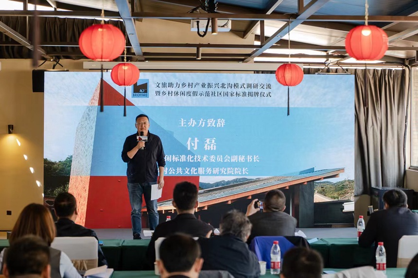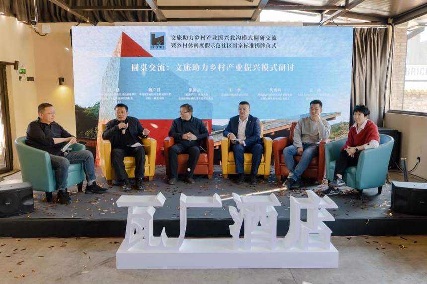 4月8日,由全国休闲标准化技术委员会、2049投资集团主办,闻旅协办,中国旅游协会休闲度假分会、乡村公共文化服务研究院学术指导的“文旅助力乡村产业振兴北沟模式调研交流暨乡村休闲度假示范社区国家标准揭牌仪式”在怀柔北沟村瓦厂酒店举行。