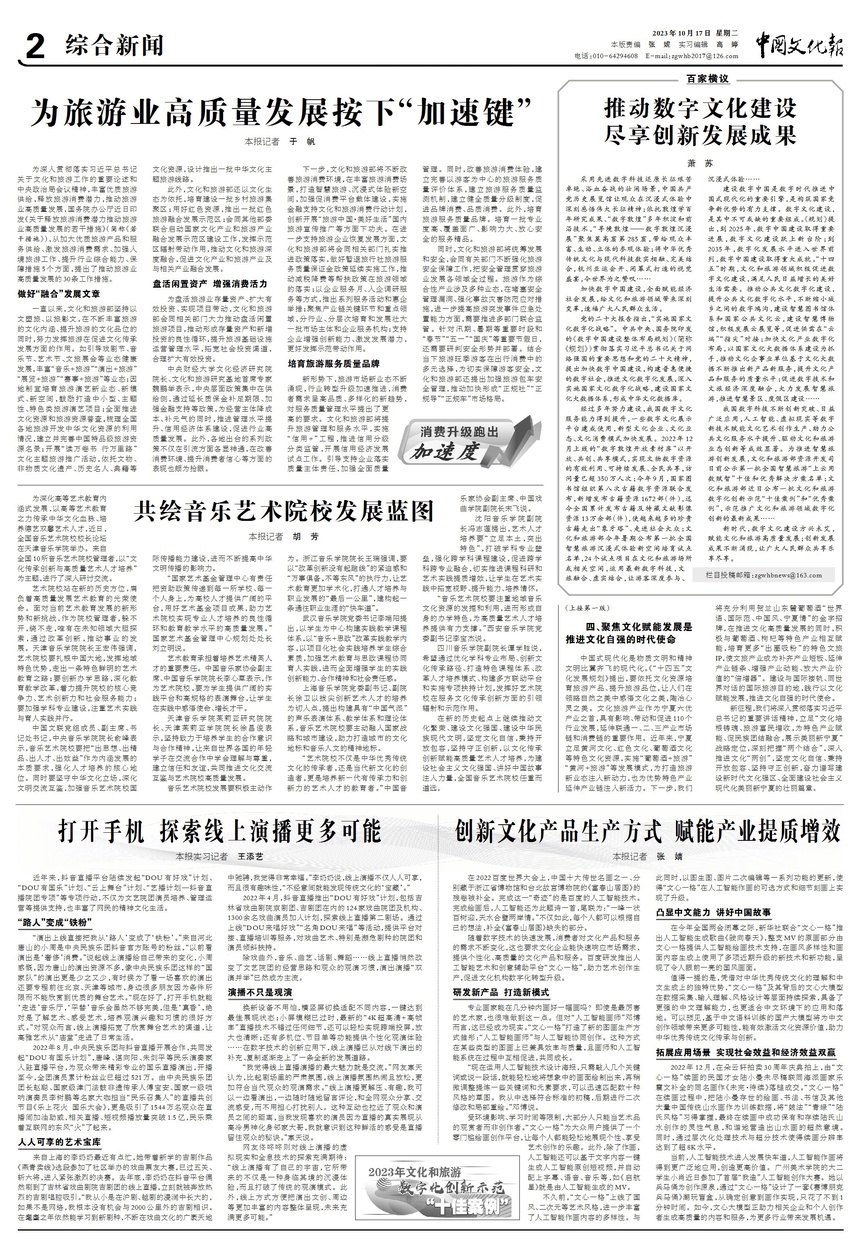 一直以来,文化和旅游部坚持以文塑旅、以旅彰文,在不断丰富旅游的文化内涵、提升旅游的文化品位的同时,努力发挥旅游在促进文化传承发展方面的作用。如引导戏剧节、音乐节、艺术节、文旅展会等业态健康发展,丰富“音乐+旅游”“演出+旅游”“展览+旅游”“赛事+旅游”等业态;因地制宜培育旅游演艺新业态、新模式、新空间,鼓励打造中小型、主题性、特色类旅游演艺项目;全面推进文化资源和旅游资源普查,梳理全国各地旅游开发中华文化资源的利用情况,建立并完善中国特品级旅游资源名录;开展“读万卷书 行万里路”文化主题旅游推广活动,依托文物、非物质文化遗产、历史名人、典籍等文化资源,设计推出一批中华文化主题旅游线路。
