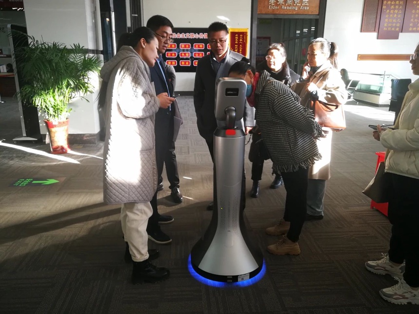 “你好,请带我到老年图书区。”“请跟我走。”在智能机器人的带领下,便捷快速地找到了老年图书区。