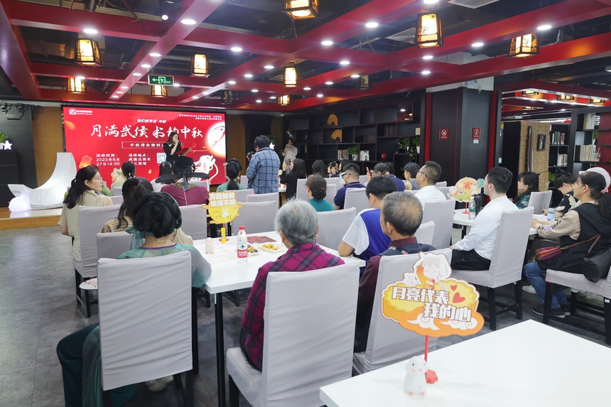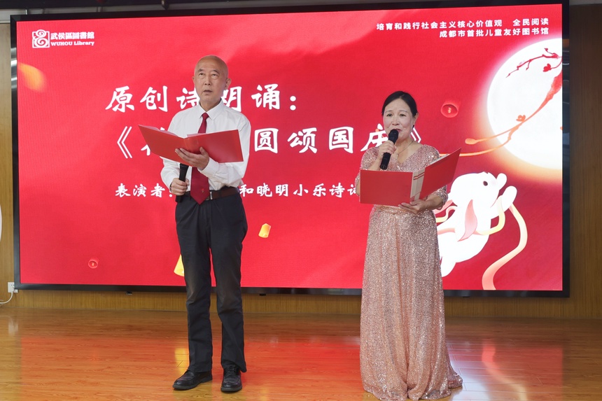 9月27日,在中秋节、国庆节双节来临之际,为传承和弘扬中国优秀传统文化,成都市武侯区图书馆开展了“我们的节日·中秋”—“月满武侯 书韵中秋”中秋诗会特别活动。此次活动注重增强读者体验感,集汉服诗词朗诵、古风舞蹈表演、猜灯谜、投壶为一体,让60余名读者沉浸式感受传统文化魅力,共同为祖国庆生。