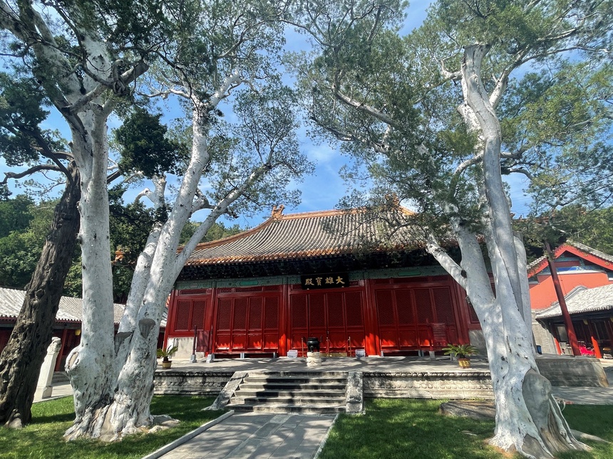 法海寺内的这两棵白皮松已有千年以上,挺拔伟岸,虬枝霜干,人称“白袍将军”
