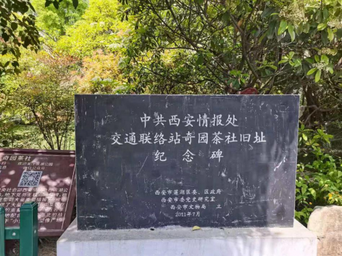 1945年5月,中共西安情报处建立的秘密交通联络站——奇园茶社旧址纪念碑